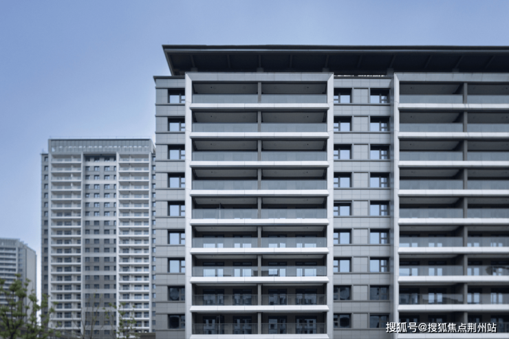 绿城“桂语系”标志性的“Super Flat扁平立面美学”,高级灰真石漆与石材搭配,极简大气。