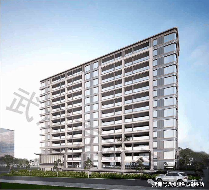 项目采用了现代风格的公建化外立面,大面积玻璃窗,转角处还做了曲面设计。