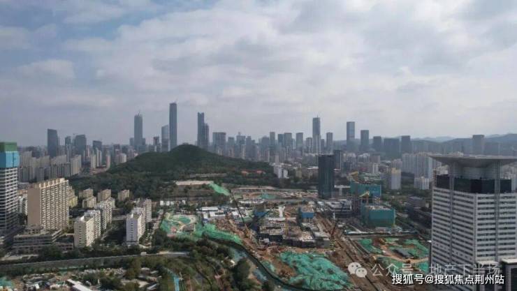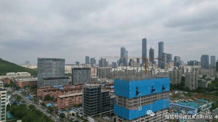 看下图,这是从地块北侧往南拍摄的,既可以看出楼座的施工进展,还可以看到南部的山体景观和城市景观。中海这一次难得是没有为了迎合市场而一味地做小高层,这个地方的高层,或许有更好的视野。楼间距也可以因此更大一些。