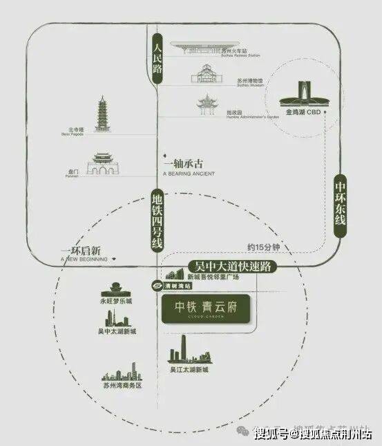 ◎发展之环:中环东接园区产经引擎,西融狮山创新脉络,南承太湖新城生态蓝图,北启高铁枢纽经济,便捷通达苏州多中心,启幕现代化城市发展新篇章。