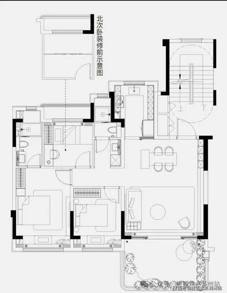 建面约120㎡,为3房2厅2卫布局,三开间朝南,约6米南向横厅,连接约17㎡花园露台,该户型是上个户型的扩大版,居住舒适度也更高,如果预算更高,这是个不错的选择。
