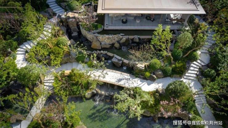 深植江南文化,秉持天人合一理念。下沉庭院以元代《山居纳凉图》为灵感源泉,借泉、水影、云石、飞瀑叠水勾勒出灵动美妙的画卷,浮桥与水亭高台巧妙增添空间层次,融合江南建筑元素,焕新传统魅力。营造与自然时序同步、充满诗意的栖居生活意境。