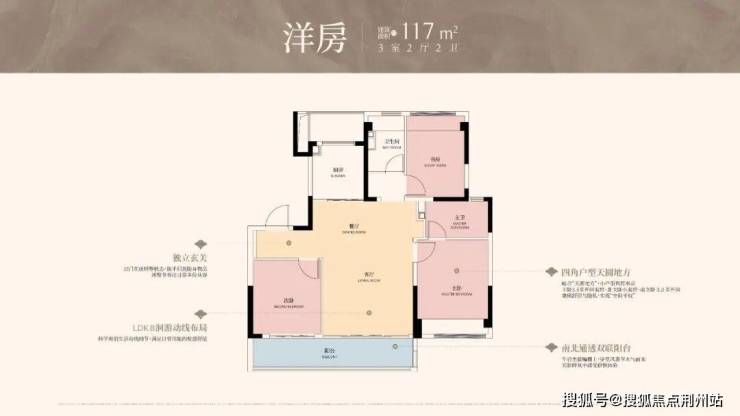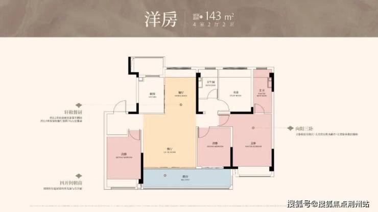 四开间朝南:双联阳台延展家的采光面与赏景面。l向阳三卧:主卧梳妆有阳光,儿童房玩积木敞亮,长辈卧休憩也暖和。