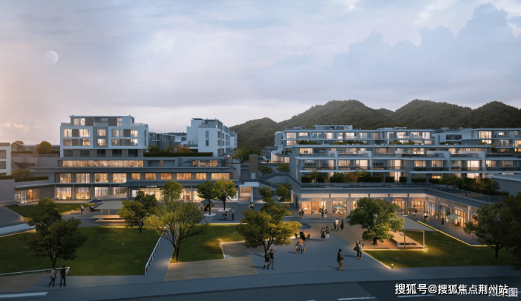 引清涧入社区,以沿湖步道框镜湖山之美,阔藏聚落广场、林间集市、度假酒店的闲情逸致。背靠山林,坐拥观湖,在保留原始树木的基础上,以山之韵林之美围合自然中庭,将四季藏于园境。