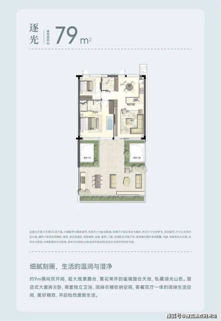 汲取九龙湖惬意度假与湖山自然真趣,打造建筑面积约56/80/100/270㎡叠翠庭院。退台式的湖山院居,设计星空露台,或是大庭院,多层次的观景空间,让每一扇窗户都有独特的视觉感受,链接湖山静美