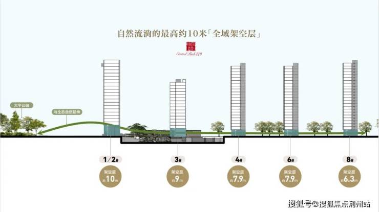 向内,项目更是以令人惊叹的魄力,打造了 约6.3-10米超高层级全域架空 设计。