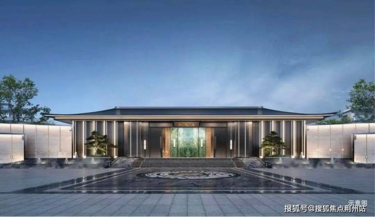 巍峨院门:对植罗汉松,堂前聚水,举步归家,拾级而上,尽显大气与尊崇。