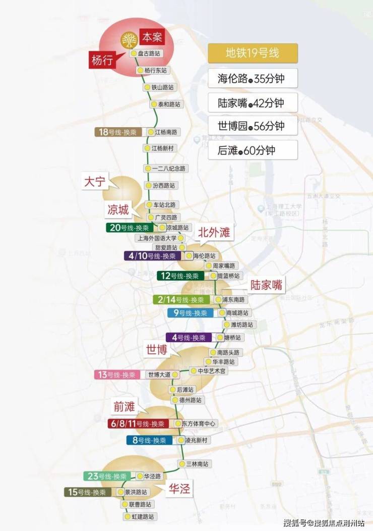 地铁19号线(在建,预计2027年通车),直达陆家嘴、北外滩、杨浦滨江,沿途18站全能换乘王,串联宝山、静安、虹口、浦东、徐汇等行政区。