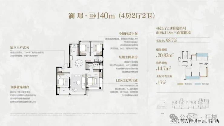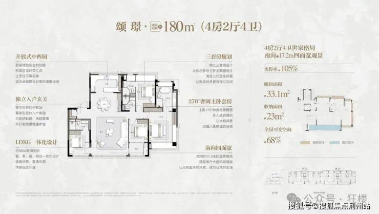 洋房产品也非常可圈可点,户型140㎡起步,全部都是大四房,得房率非常高。