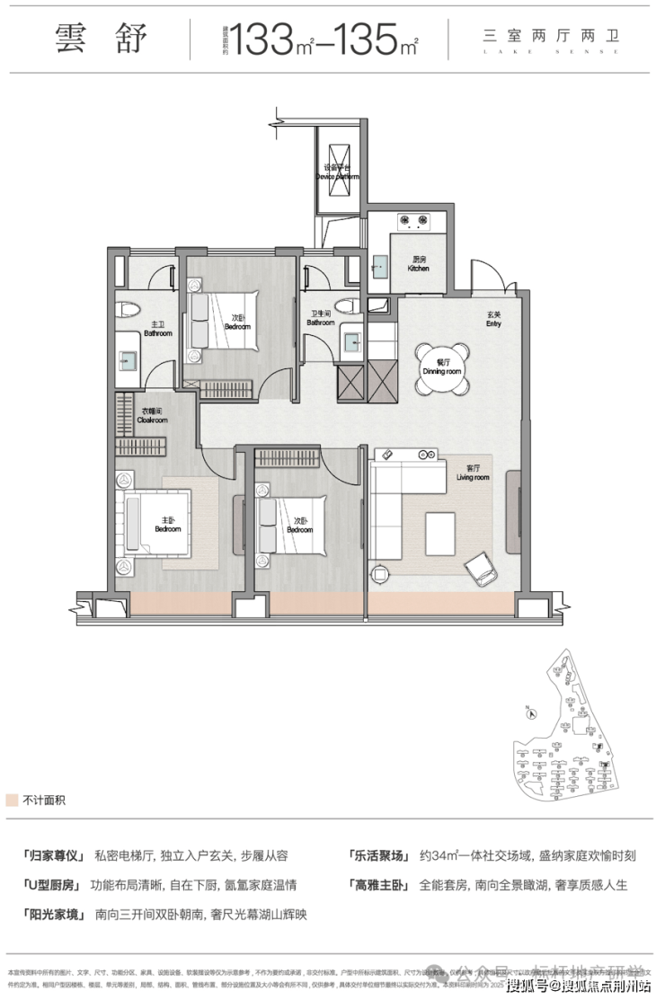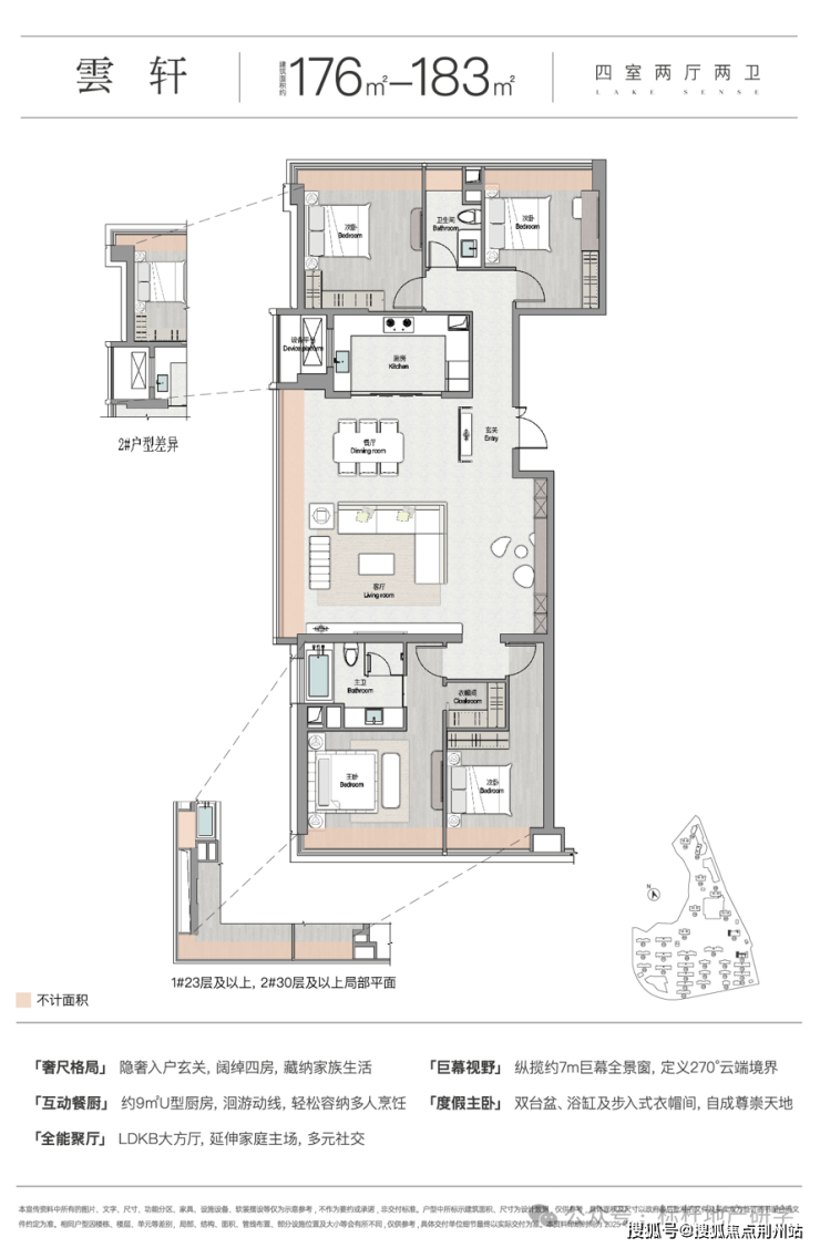 •极致视野景观: 约12米以上的总居住高度,拥有叠拼区最佳观湖视角,实现“花园+湖景”的双重享受。