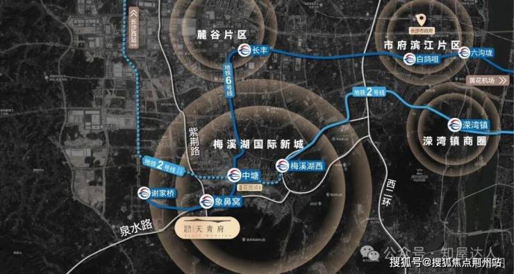 交通叠新:项目北侧接梅溪湖东西向主干道-泉水路,出门即地铁6号线象鼻窝站口,6号线横跨长沙东西直达黄花机场,一站即至花园城(在建),换乘2号线到五一广场/芙蓉广场等城市中心,畅游全长沙。