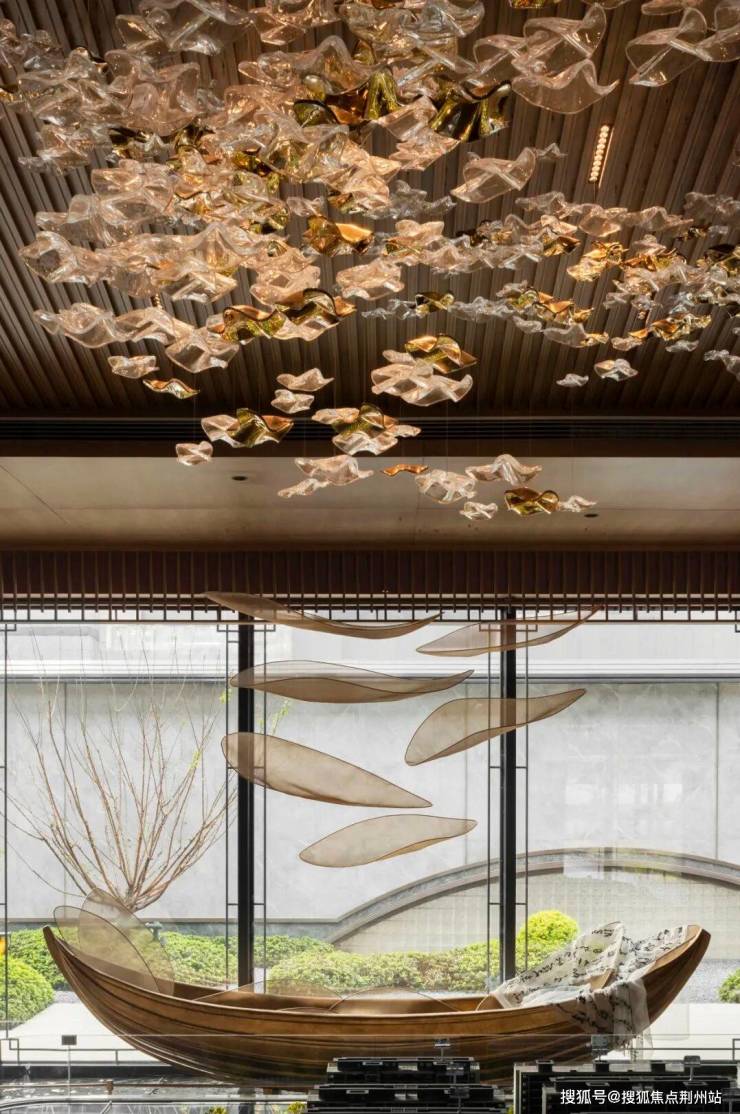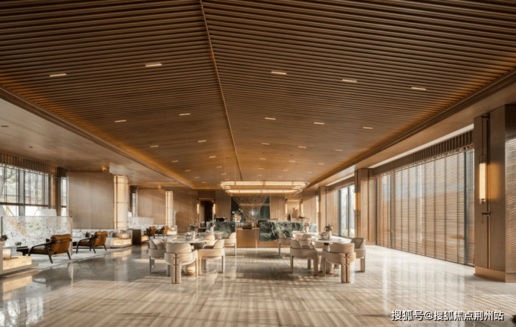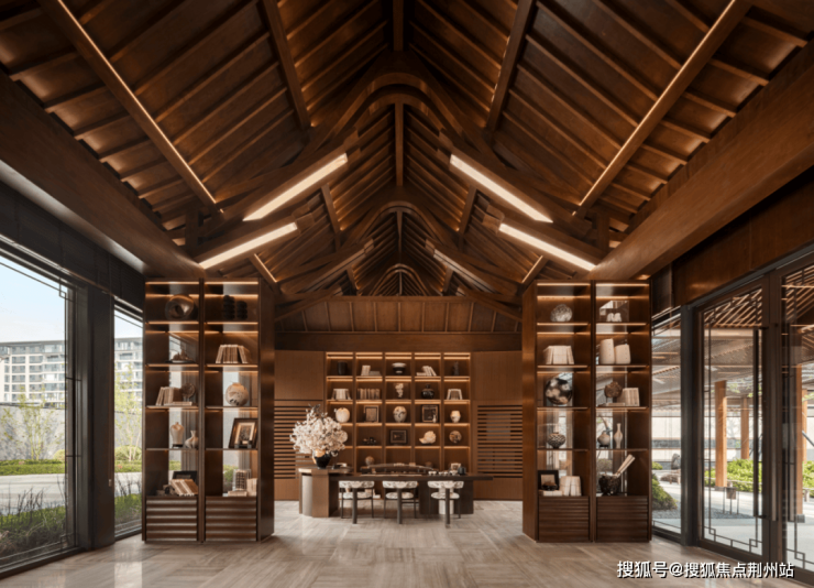 建筑风格:融合宋式典雅风韵与现代美学,立面以大面玻璃搭配灰色金属线条,简洁大气。