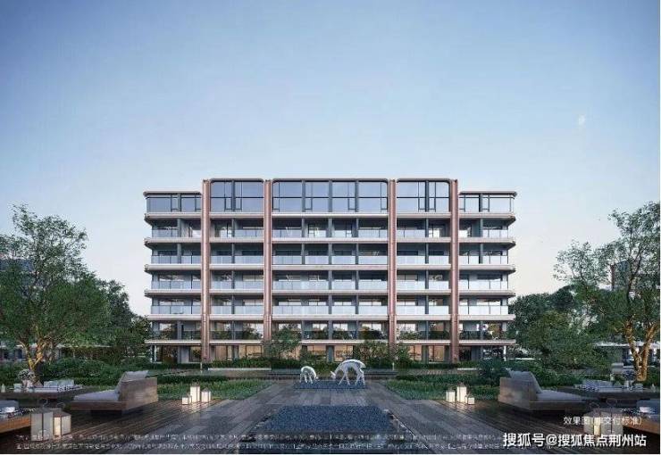 其次是外立面,项目溯源海派经典的ART DECO风骨,采用经典的三段式结构,整体布局讲究对称和秩序,横竖线条交织,体现出简约工整的现代美感。在选材上,项目采用米色石材、铝板和金属镶框进行多元混搭,重点刻画单元入口、入户大堂等细节,质感非常丰富。尤其艺术感的弧形镜面立面,与门前蜿蜒的水岸风光相呼应,让建筑仿佛拥有了呼吸感和浪漫的情绪。
