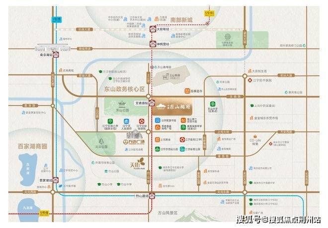江宁区委区政府、江宁人民大会堂等驻地于此,集聚了江宁区90%政府资源,东山更是成为发展的决策中枢与精神源心。