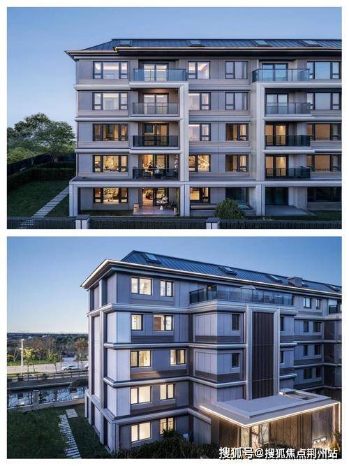 建筑风格:建筑融合横沔古镇水乡韵味与现代极简美学,米白石材搭配古铜色金属线条,局部玻璃幕墙勾勒出轻盈天际线。