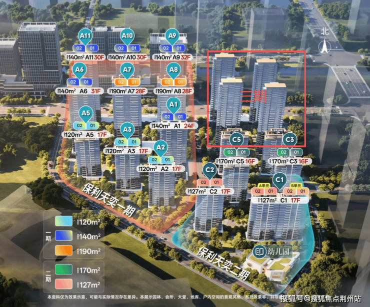 两栋17层小高层,专门给140平户型!对比一期30-32层的高层,这容积率直接降了一档,居住舒适度都非常不错。