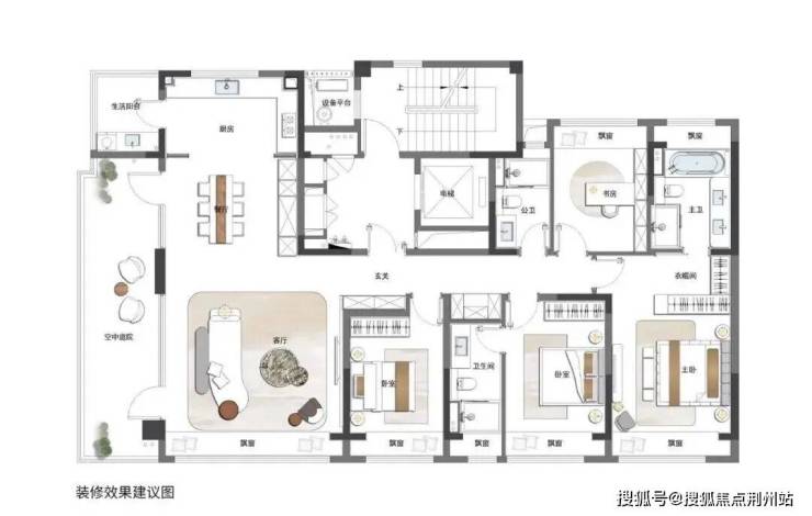主卧套房,双衣帽间,三面采光;南向双开间阳台;双套房次卧;