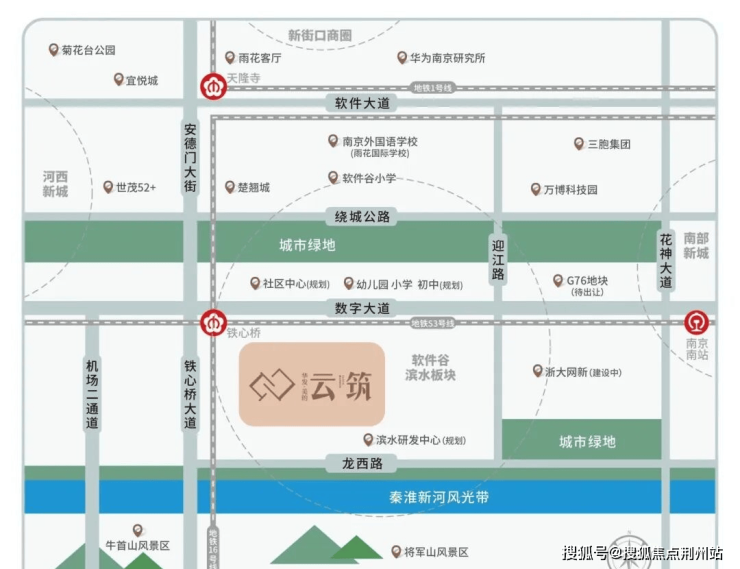 如果想自驾,家门口的数字大道与秦淮新河黄金轴线几乎完美重合,与机场二通道和花神大道交汇。沿着数字大道,可以迅速串联城市东西,连通新街口、河西中部、南部新城、雨花四大城市中心。