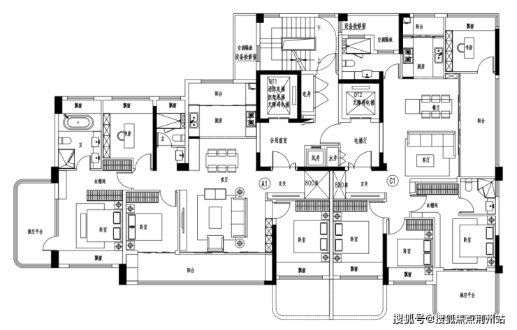 建面约135㎡4房2厅2卫C1(位于1号楼)