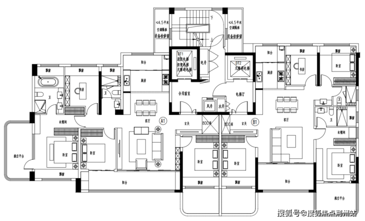建面约155㎡4房2厅2卫A1(位于1、2号楼)