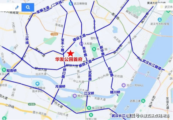 华发公园首府站位武广-西北湖板块,位于航空路与宝丰二路交汇处,南面一路之隔就是同济医学院,同时靠近解放大道,北拥建设大道。