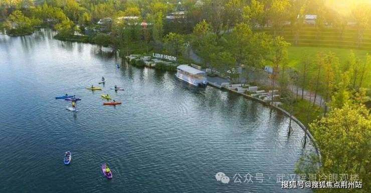 三面环水一面瞰江滨水景观带,府河湿地公园、幸福公园、张公堤森林公园、鱼梦科普公园四大公园环绕,自建约3.2公里幸福长堤绿道,距离高端文旅项目-麓洲国际生态城直线仅1.2公里。