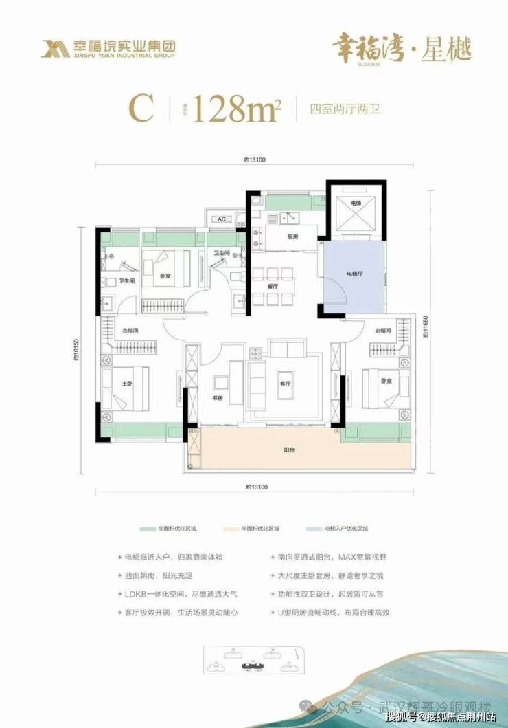 2、整层全部为128㎡户型,圈层纯粹;