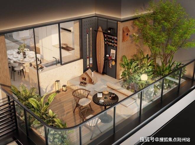 露台作为室内空间的延伸,为业主提供了更为广阔的观景视野,更以多元场景重塑生活维度:可作围炉煮茶的空中会客厅,亦可化为侍花弄草的私属绿洲,在这里活自然不再是遥不可及的远方,而是触手可及的日常。垂直花园体系让仰望星空重新回到我们的日常居家生活中。