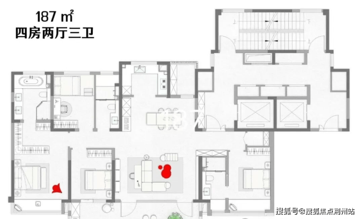 产品类型:纯改善大平层,户型面积为156㎡、187㎡、242㎡,全部精装交付。