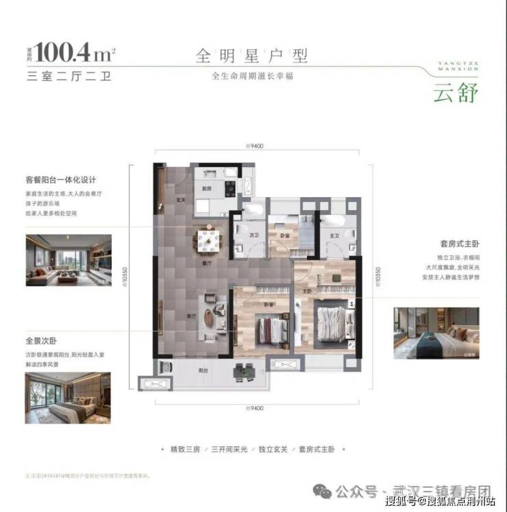 约108㎡【3房2厅2卫】双卫设计,高利用率,空间更阔绰