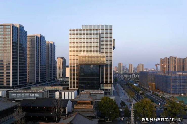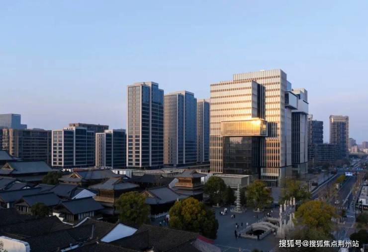 主轴线两侧的办公塔楼 © 赵强 为了充分尊重和礼让周边的历史文脉与自然环境,英蓝集团主动将高层建筑体量从用地红线后退30m,在原规划80m高的区域只建9m高的小体量建筑,最大限度地减少了高楼对香积寺和周边城市道路的压迫,为香积寺让出了天际线。