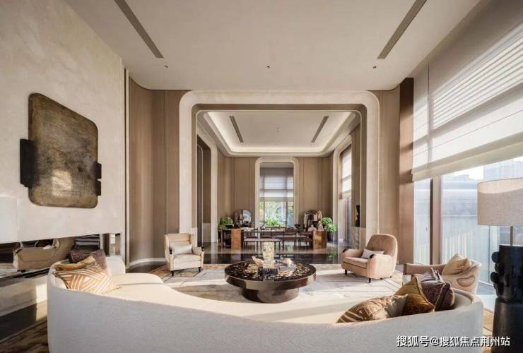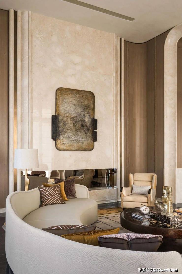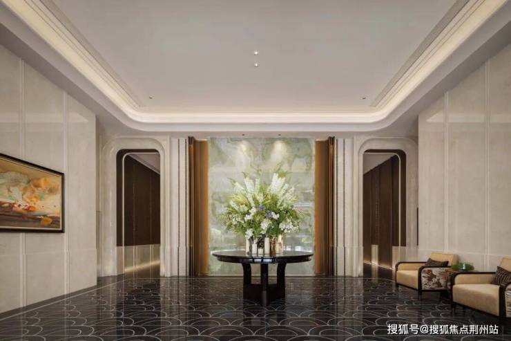 首层大堂以当代法式美学为基调,华盖式主入口以恢弘尺度筑就归家序厅的第一重礼赞。
