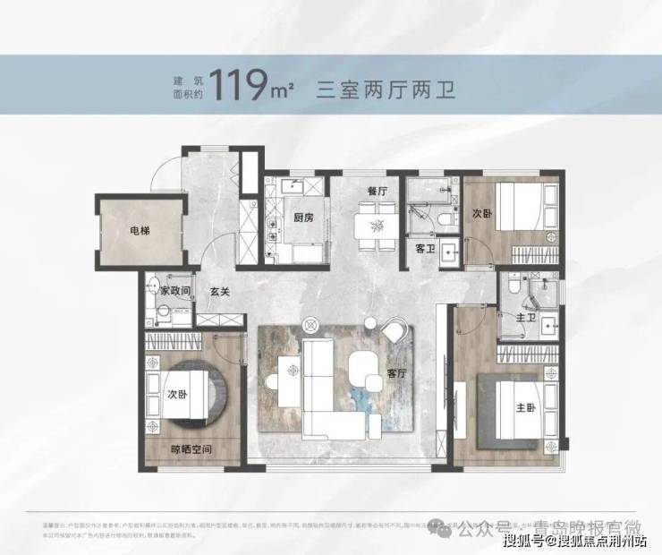 对比传统豪宅往往通过大面积堆砌来彰显价值,海信·金沙滩则转向对每一平方米的精细打磨。例如,建面约119㎡户型在实现约6.5米阔景宽厅的同时,仍能保证各功能空间的合理尺度。
