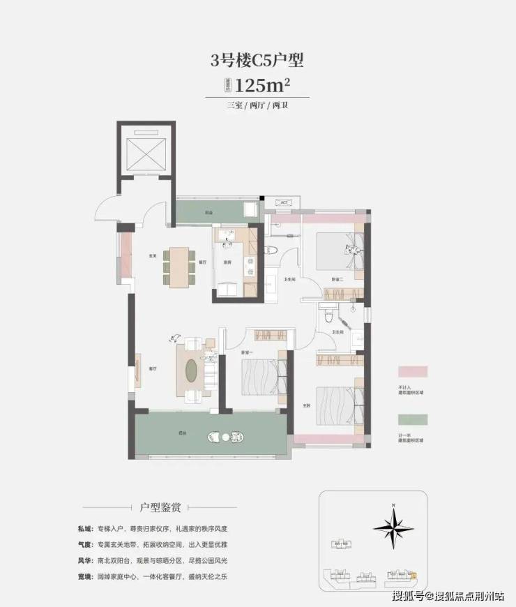 建面约125平东边户,电梯厅直达入户门,可实现私享。南北双阳台极为惊艳,准四代中并不常见。还有干湿分区的公卫,实用性明显更高。