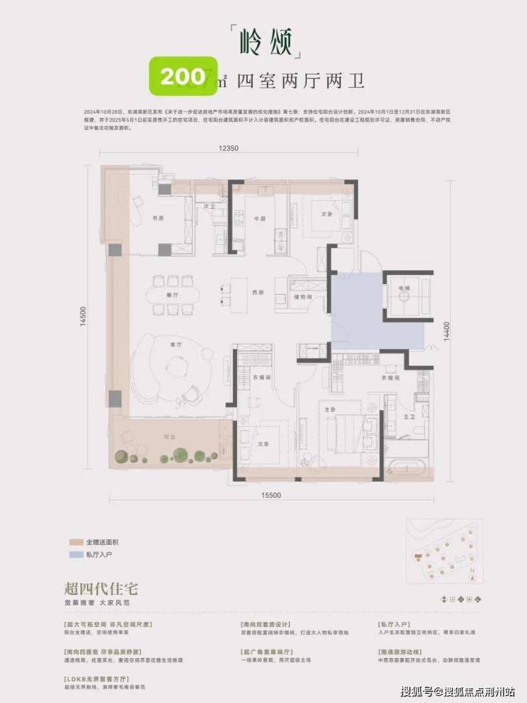 2.独梯独户,端户布局,南北通透,270度环幕落地玻璃幕墙,16米全南向落地窗