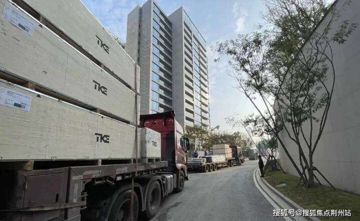 现场多个塔吊同步作业,工程车往来不绝,满载着石材、玻璃等各类建材,井然有序,节奏紧凑;施工人员的身影遍布各个作业面,现场热火朝天。