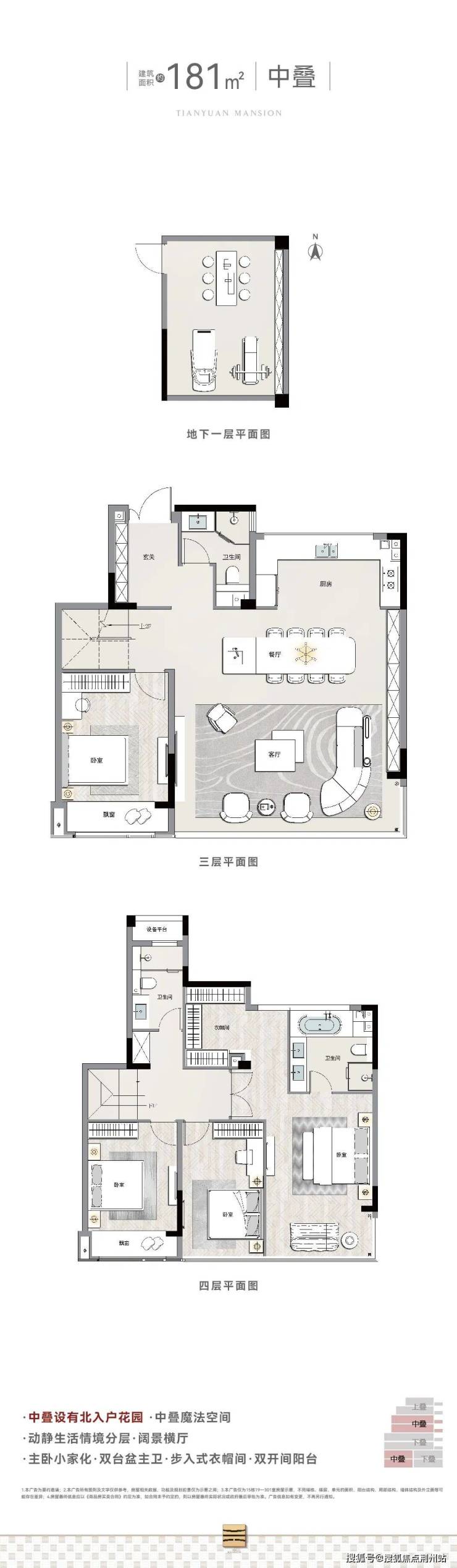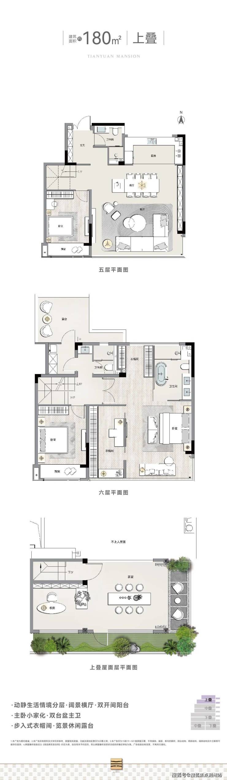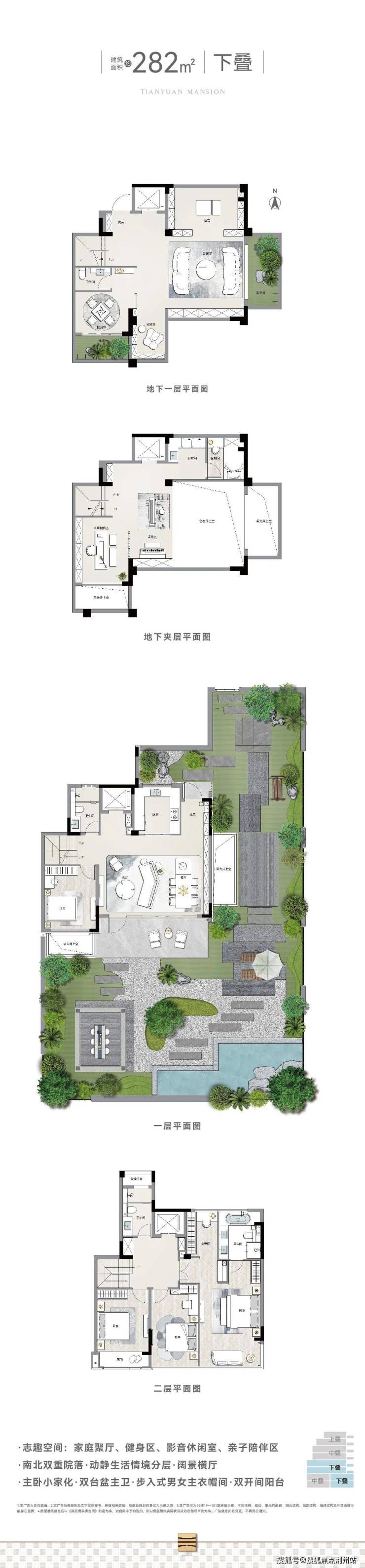 藏隐叠墅丨建筑面积约180㎡—282㎡。