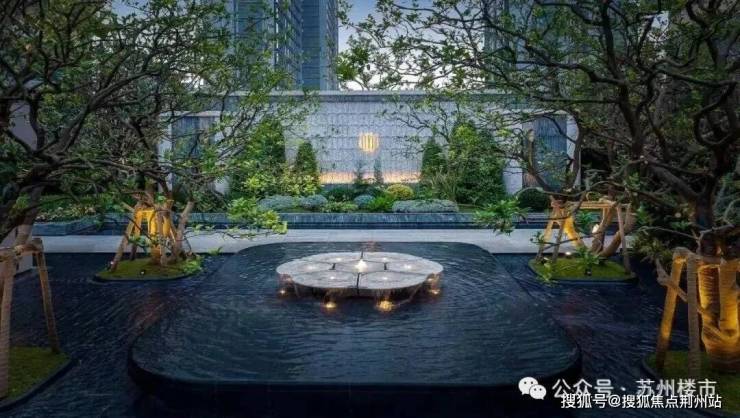 约5米高悬挑飞瀑添灵动,搭配羽毛枫等多层次绿化与镜面树池错层平台,完全跳出传统改善盘的堆叠感,有种在酒店度假的松驰感。