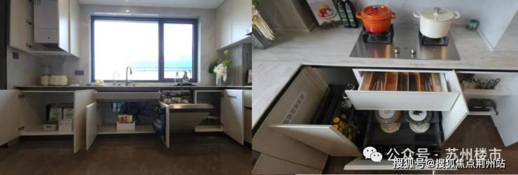 厨房,不只有上方柜体拉篮、下方碗篮抽屉、调料抽拉柜,水槽下面的还专门做了一个下翻抽。