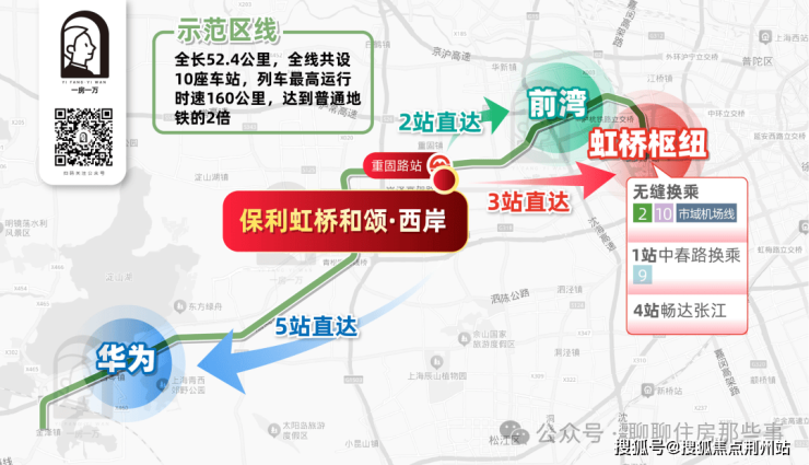 交通:直线距离在建示范区线重固路站约 600 米,2 站前湾、3 站直达大虹桥核心区,5 站到华为研发基地,换乘 2/10 号线可快速抵达市中心;