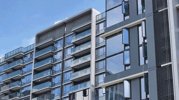 LOW-E 双层夹胶玻璃 + 超大面积金属铝板组合,再配上汤臣一品同款的隐框式栏杆,除了色泽质感、隔音隔热之外,这套组合最显著的特质就是无惧风雨洗刷。