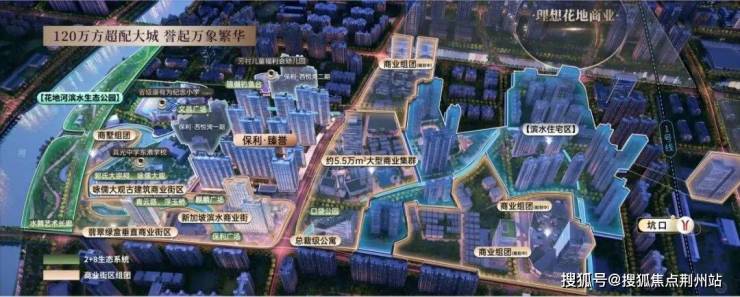 项目将为片区打造约40万方亲水滨河商业带,打造与水岸相融合的生活美学综合体。