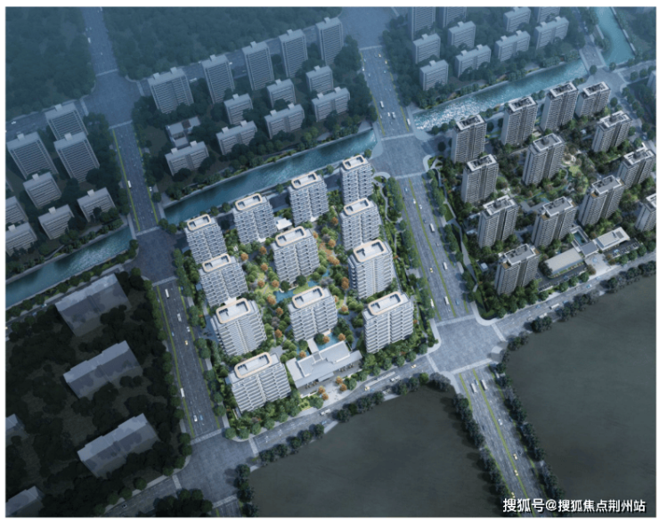 2,从效果图来看,社区的风格为现代化的住宅社区;同时,根据要求,住宅建筑立面材料以玻璃幕墙、金属板材、石材为主,比例不得低于80%。