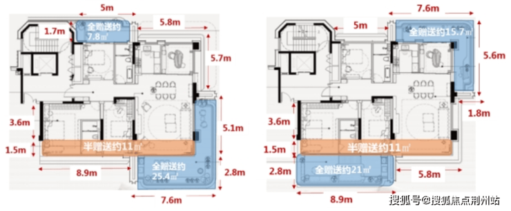 【125㎡户型】 赠送面积约36-41㎡,实际面积超160㎡,最高使用率可达133%。