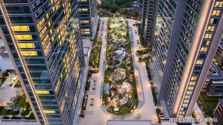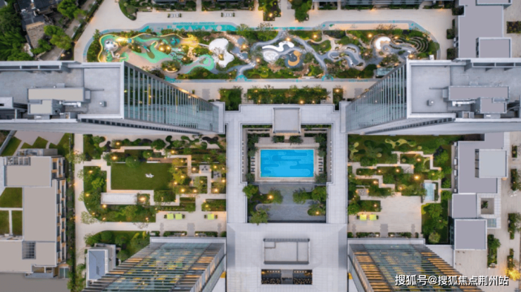 绿城把中央车站、庐外客厅与中轴泳池,变成一个社区垂直枢纽。这种颠覆式的园区配套,是武汉首次出现。