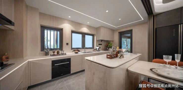 厨房的设计直接关系到生活的温度。建面约175m²户型深谙此道,打造中西双厨烹饪天地。开放式的厨房设计,搭配功能完备的西厨岛台,让备餐、社交、轻食、品酒融为一体。无论是中餐的煎炒烹炸,还是西点的精致烘焙,都能找到最得心应手的操作空间。在这里,料理不再是孤军奋战的劳作,而是家人共同参与、分享欢笑的温馨场景,让三餐四季,皆可邂逅美味盛宴。