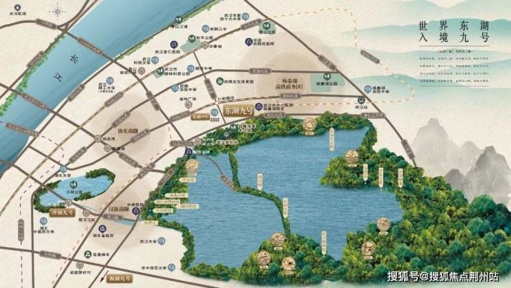 以东湖九号为原点,对岸是东湖之眼、磨山、华科、地大,远处是光谷、鄂州。东侧为落雁景区、花山、严西湖,西侧为省博、东湖宾馆、武大。东湖,是每个人的东湖,却是少数人的“前花园”,随时在落地窗前,欣赏日出日落,坐看云卷云舒。
