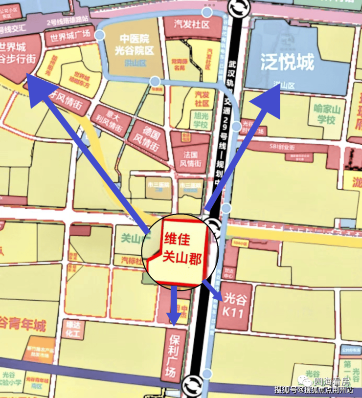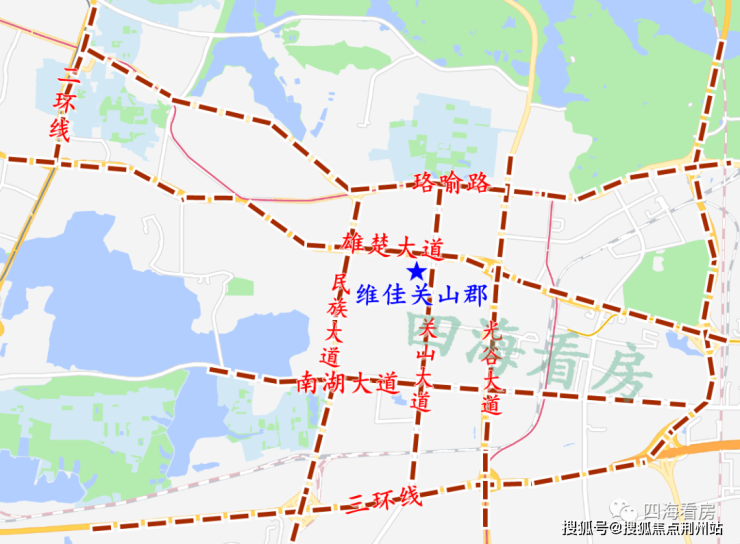 维佳关山郡位于雄楚大道与关山大道交汇处,在楼市划分中属于关山大道核心板块,行政划分属于东湖高新区,属于三环以内。