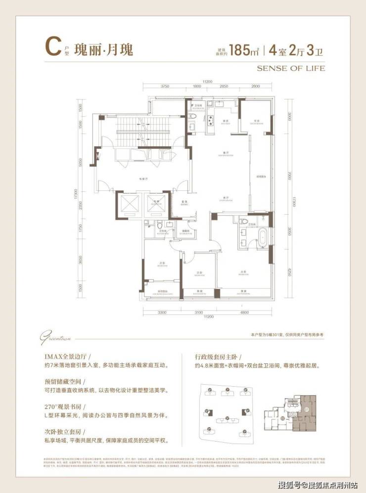 185㎡大户型,采用LDKB可变户型设计,将餐客厅、厨房、阳台打造成一个流动的家庭社交空间。此外,餐客厅拥有约7m的超长落地窗,书房与主卧尊享270°超宽采光面,适合在晨光与暮色中与家人共度温馨时光。