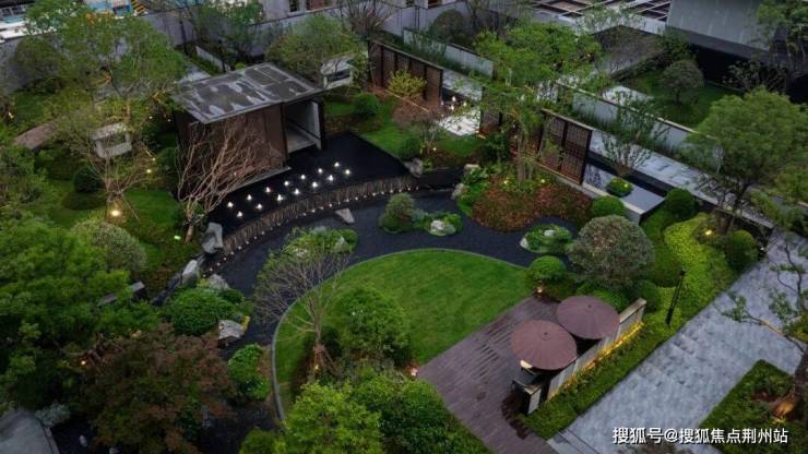 汲取宋代画作中的青绿精华,将其巧妙融入园林景观,打造温婉而高雅的青绿色调,营造“青绿之韵”的视觉主线。精选黑松、红枫等名贵植被,搭配蟒水纹铝板、蓝眼睛花岗石,辅以产自山西的黑山石作为点睛之笔,共同描绘出一个充满东方韵味、流传千年的美学画卷。